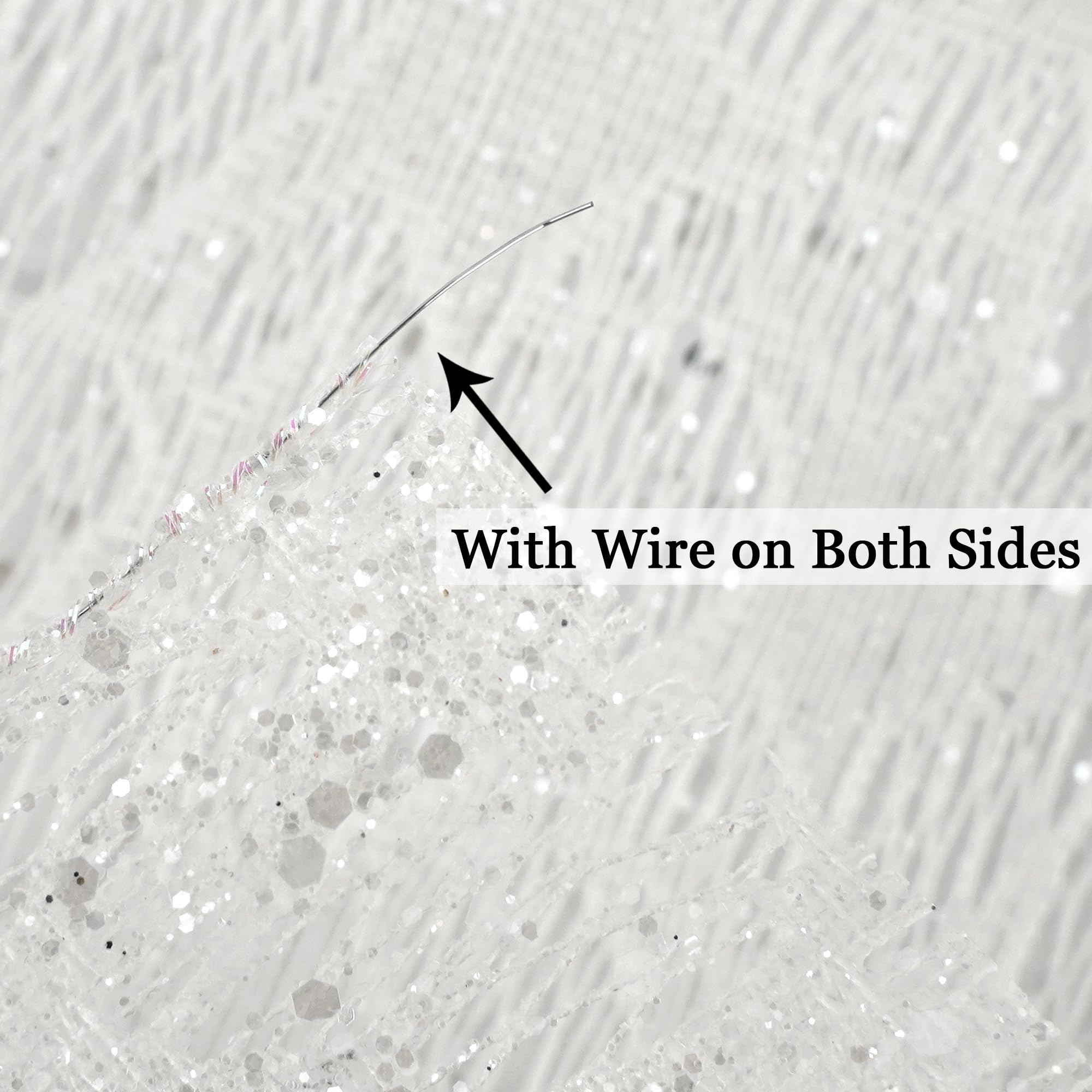- With its generous length and wide design, this white glitter mesh wired edge ribbon is an essential addition to any crafter's toolkit. Use it to tie gorgeous bows, weave into garlands, or accentuate floral arrangements. Its versatility means you can incorporate it into a variety of themes and styles, allowing your creativity to flourish.