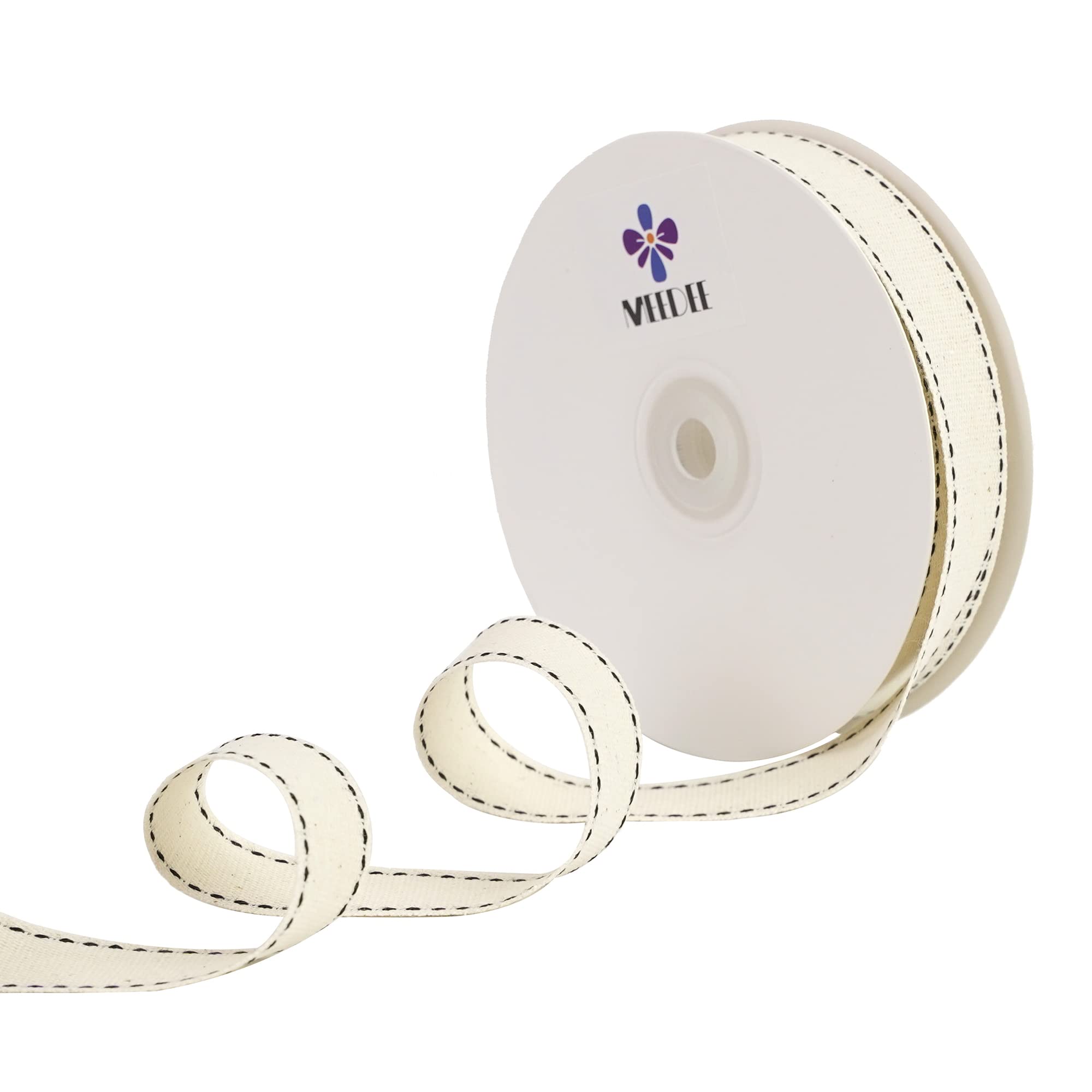- [ COLOR ] Ivory and black color stitched 100% cotton ribbon.