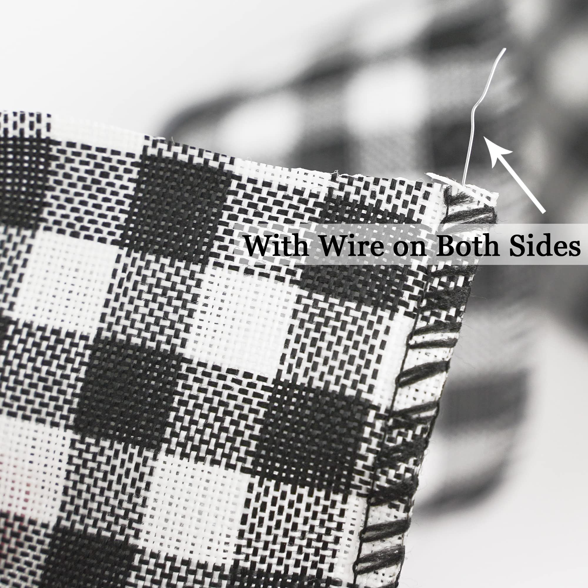 - Unwrap the timeless charm of our 2-1/2 inches wide black and white gingham wired ribbon, a classic choice to infuse your holiday festivities with a touch of elegance. Unraveling 25 yards of sophistication, this ribbon showcases a striking black and white checkered pattern that effortlessly blends tradition with modernity. Its wired edges provide flexibility, allowing you to craft intricate bows, embellish wreaths, wrap presents, and add a refined touch to your Christmas creations.