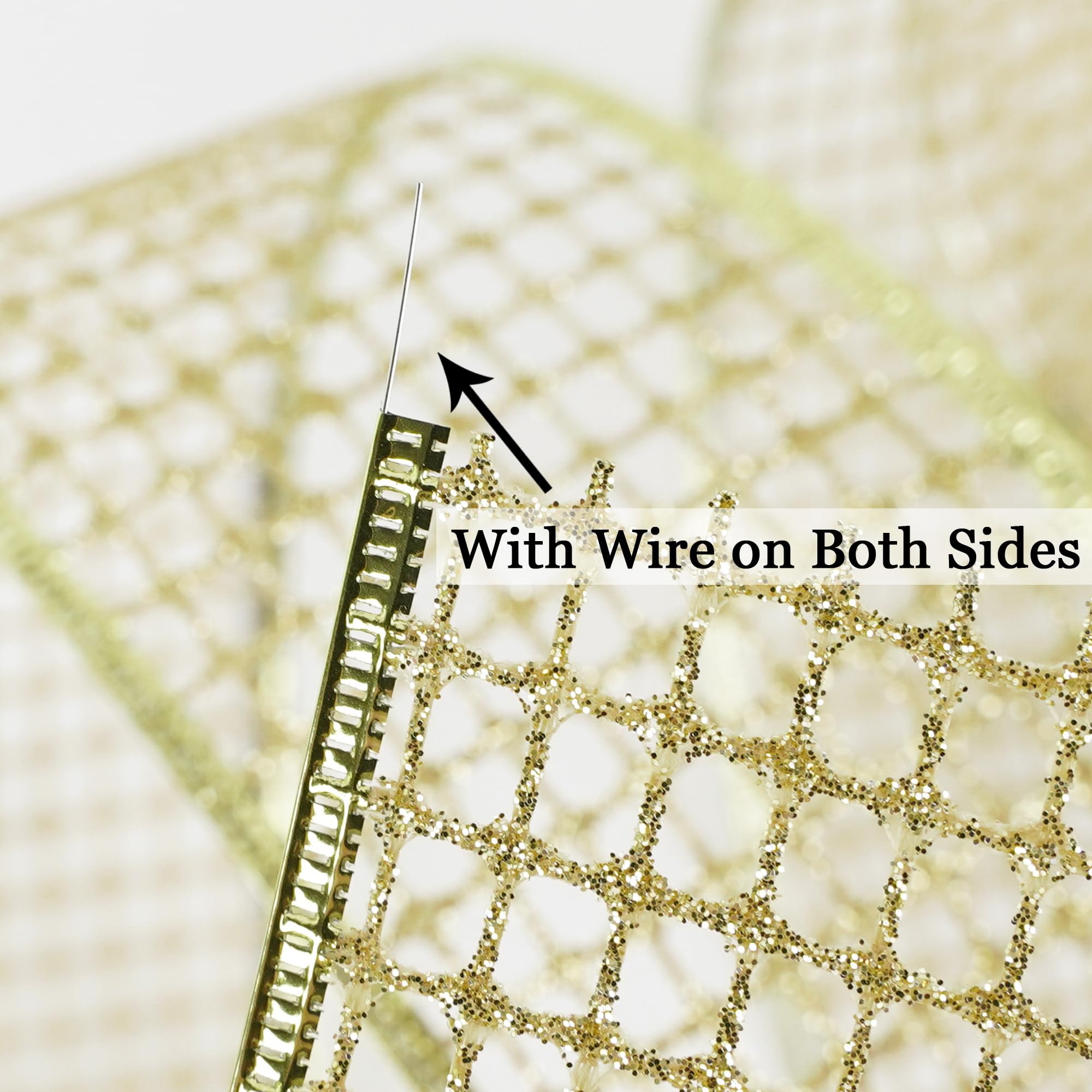 - This metallic netted ribbon showcases a distinctive texture reminiscent of delicate square glitter mesh, lending timeless elegance to your home decor this holiday season. Designed with a thin wire along its edges, it enables easy shaping into beautiful loops and bows while retaining their desired form. Its unique and attention-grabbing design makes it a must-have accessory for crafters and decorators seeking to infuse a touch of glamour into their projects.