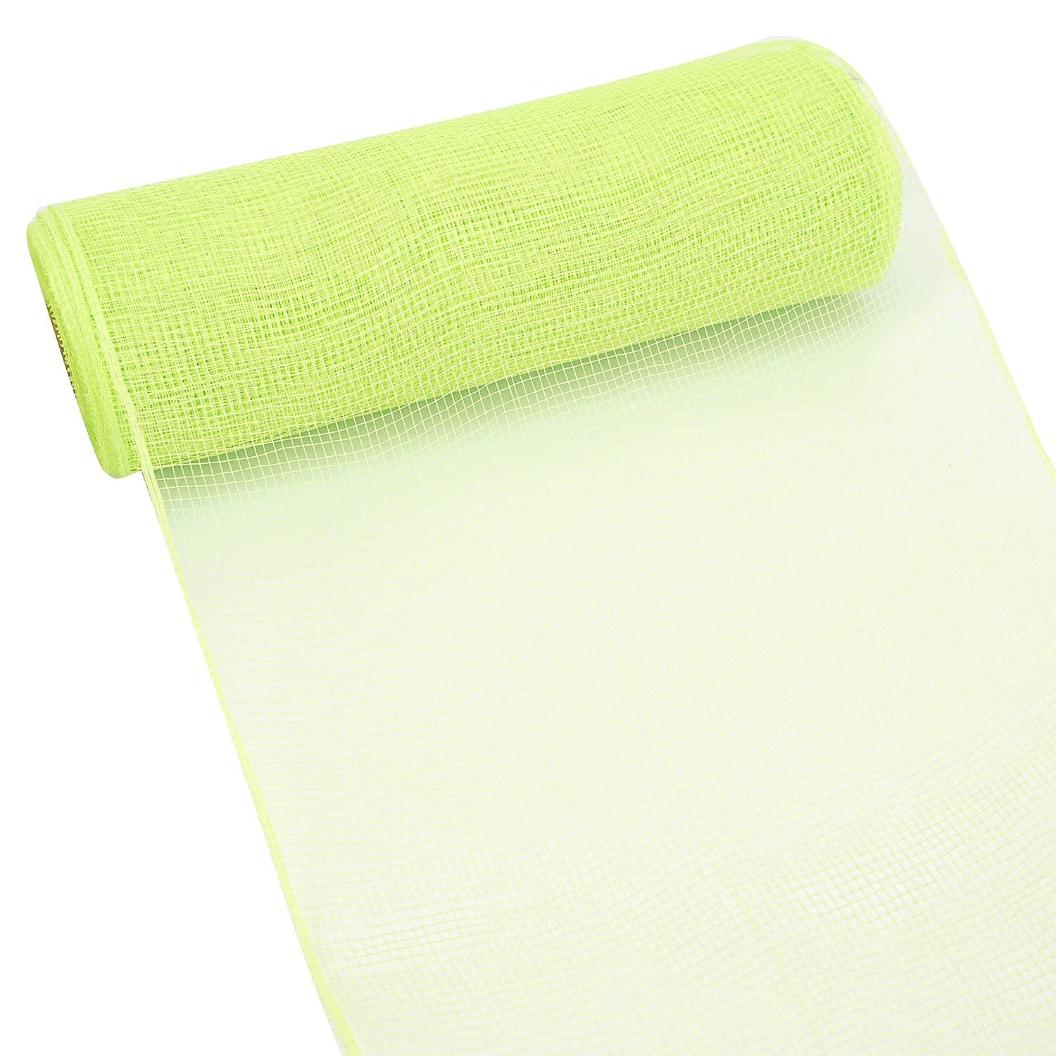 - A 10 inch wide, 10 yards roll of apple green deco mesh ribbon. The synthetic poly material is waterproof and durable. It's also re-usable! Whether you're making a wreath, a garland, or a bow, the beautifully full ruffles, curls and poofs that you fix into your design will stay that way.
