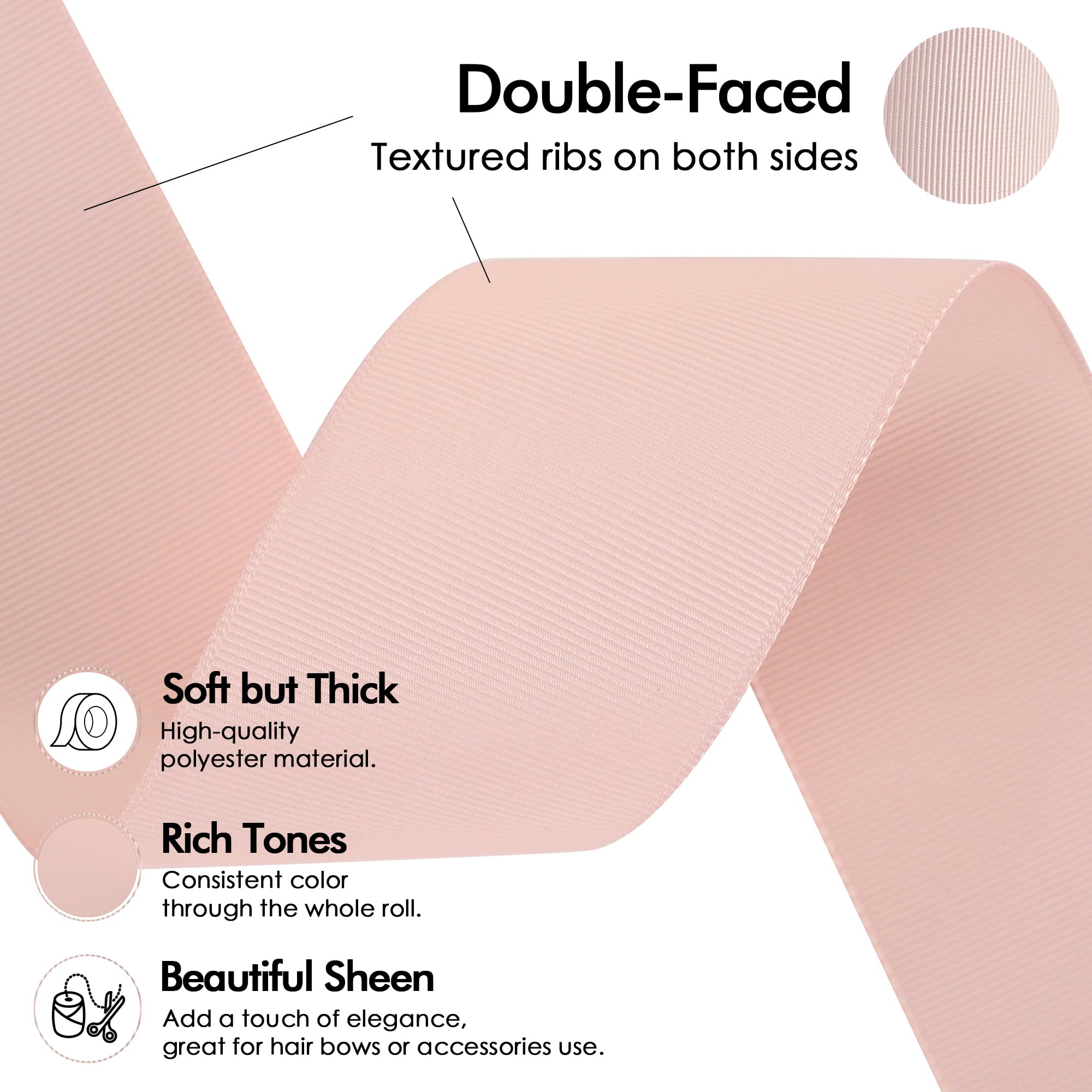 - Solid rose gold color grosgrain ribbon. Made from high-quality polyester material that is strong and long-lasting, making it perfect for all your crafting and decorating projects. This 2-inch woven grosgrain ribbon has a beautiful sheen, vibrant color, and the perfect consistency for shaping hair bows as well as other craft projects: it is sturdy, but not too stiff! Use it for all your gift wrapping and crafting needs for a touch of elegance.