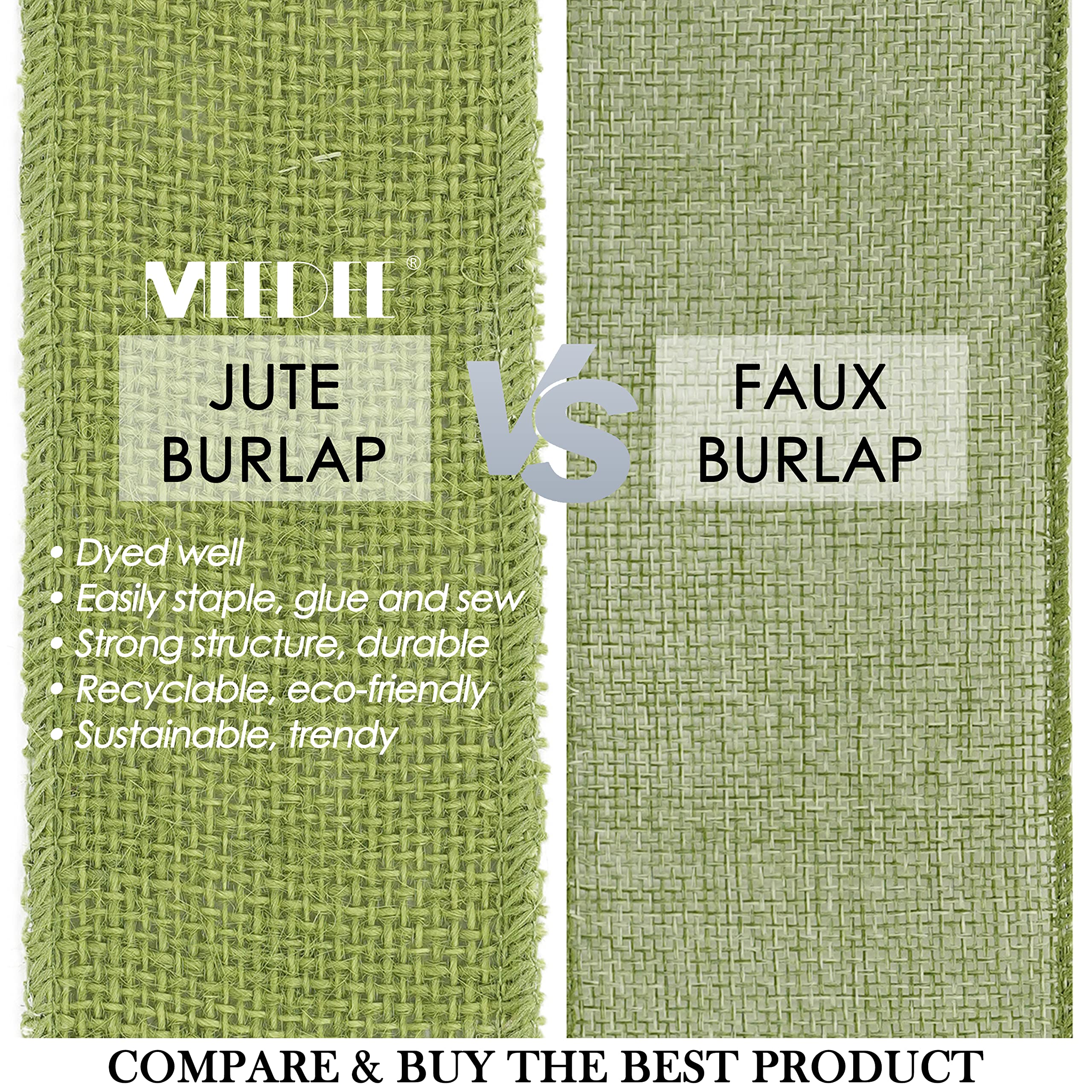 MEEDEE Sage Green Burlap Ribbon 2.5 inch Natural Jute Burlap Ribbon Sage Ribbon Burlap Roll Jute Ribbon Craft Ribbon Fabric Ribbon for Rustic Party Wedding Decorating Wreath Bows Making (10 Yards)—
