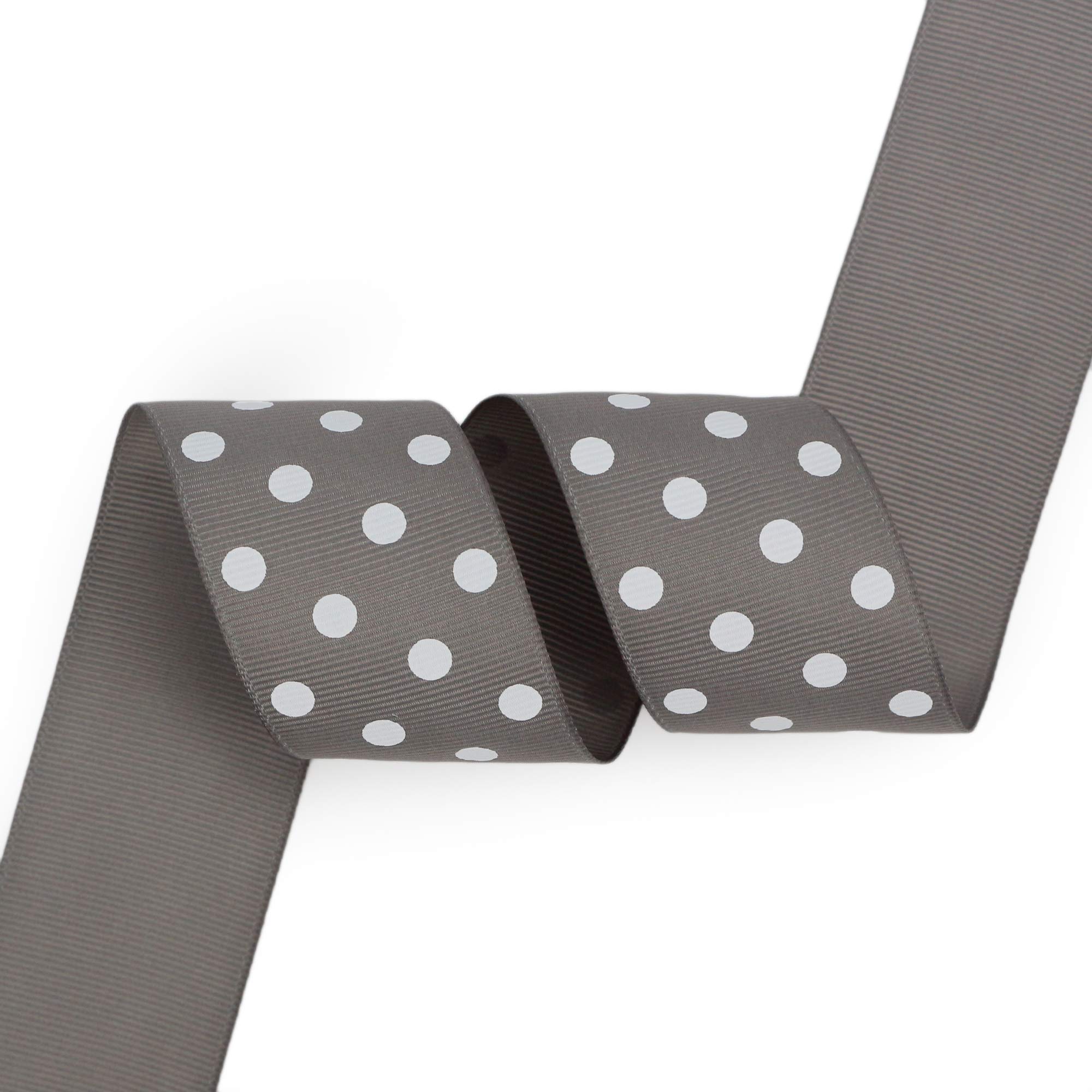 Midi Ribbon 1.5" Polka Dot Grosgrain Ribbon - Grey with White Dots - Baby Shower, Wedding Occasion - 10 Yards—